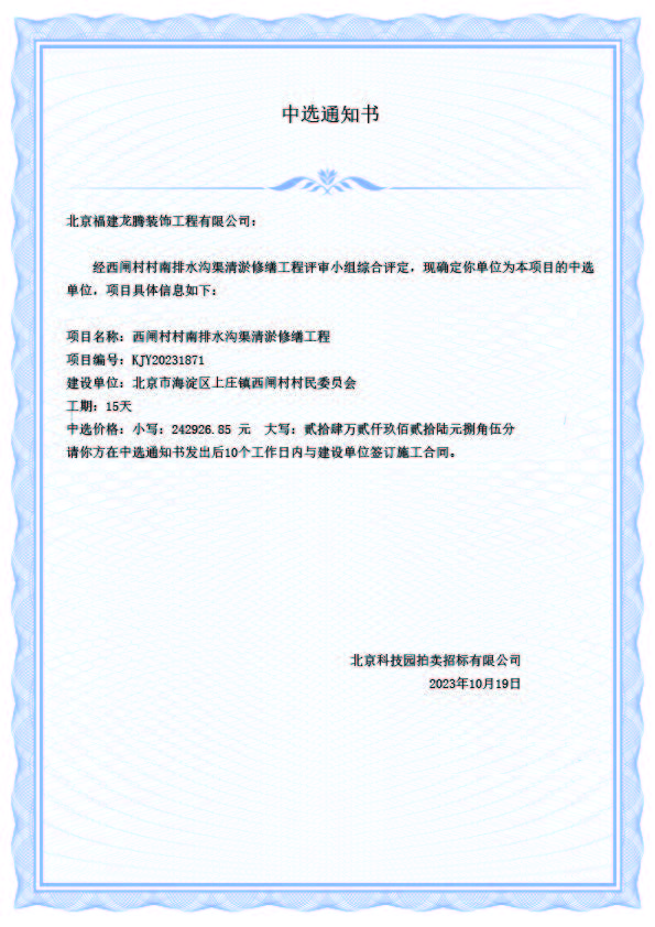 中選單位:北京福建龍騰裝飾工程有限公司