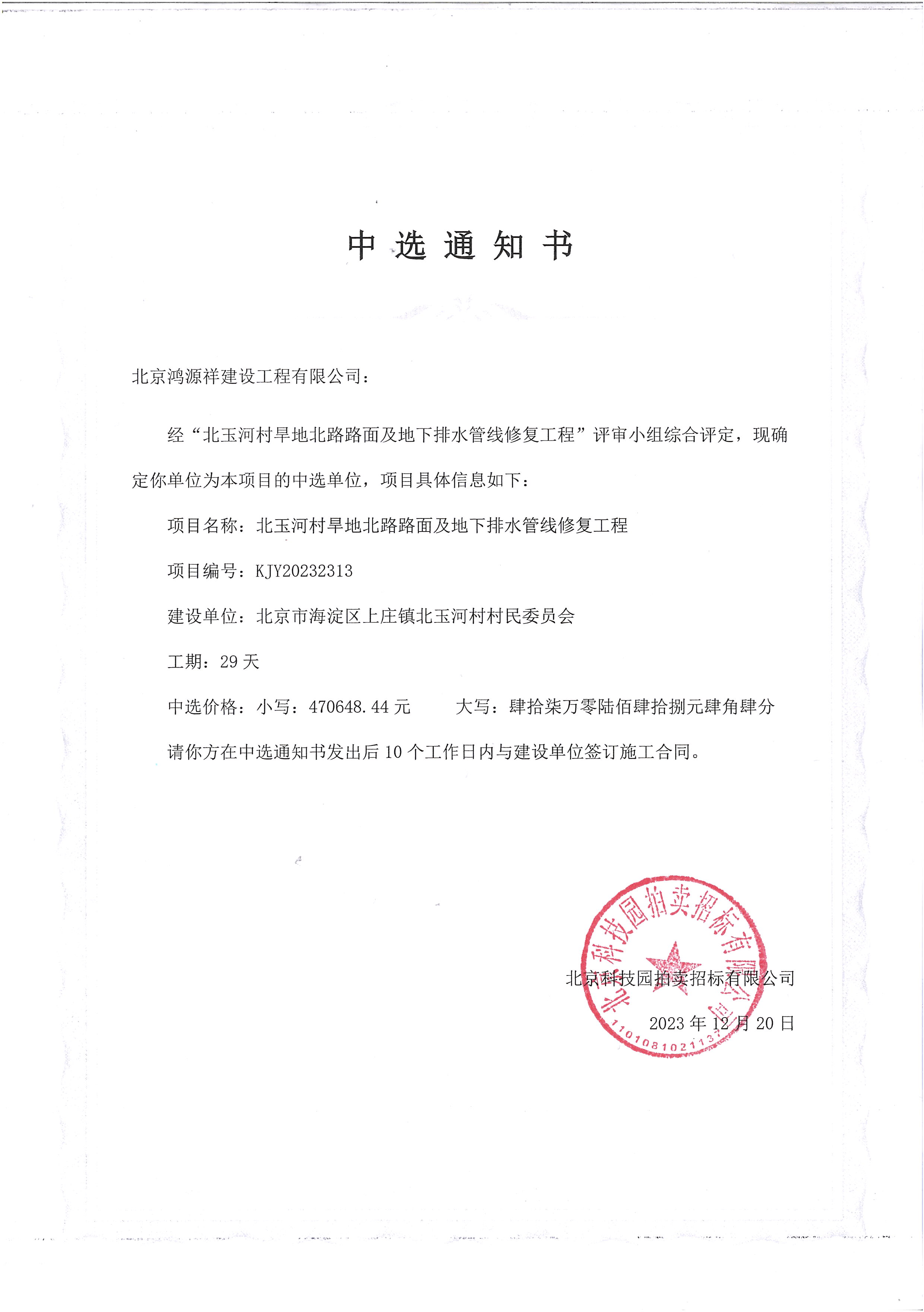 中選單位:北京鴻源祥建設工程有限公司
